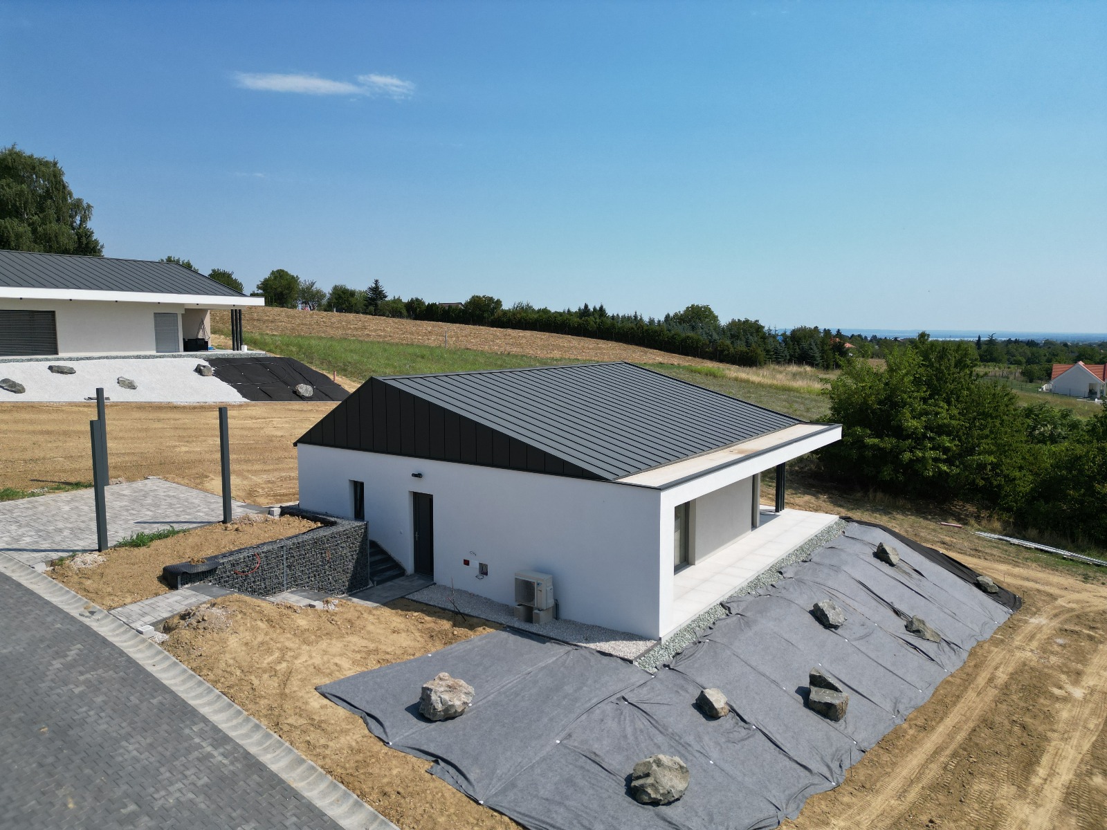 In einer ruhigen Wohnlage von Cserszegtomaj, nur wenige Minuten vom weltbekannten Thermalbad Hévíz und dem Balaton entfernt, steht dieses moderne, ebenerdige Familienhaus mit einer Wohnfläche von 122 m2 auf einem großzügigen Grundstück von 1000 m2.
