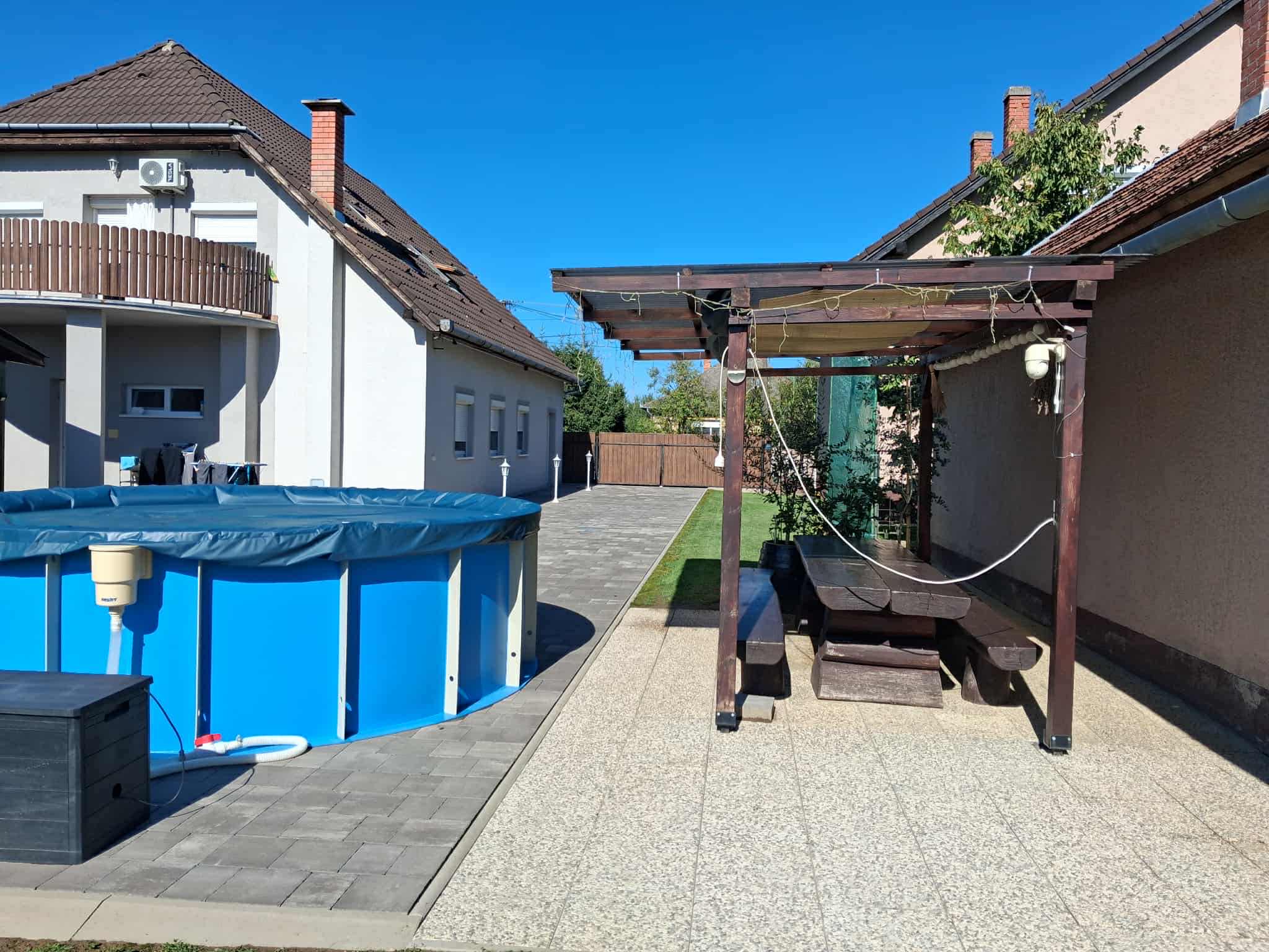 Das Familienhaus mit einer Fläche von 184 m2 wurde in 1992 gebaut und 2018 renoviert, der Hof ist in 2022 fertiggestellt worden. Das Anwesen mit dem Nebengebäude liegt auf einem 2 013 m2 großen Grundstück.