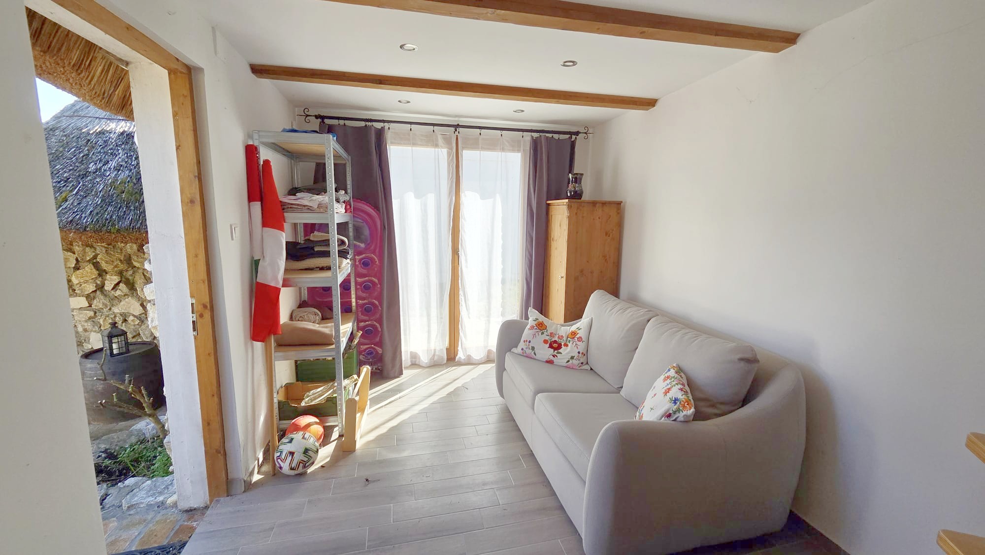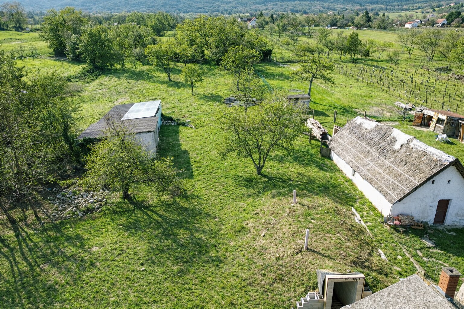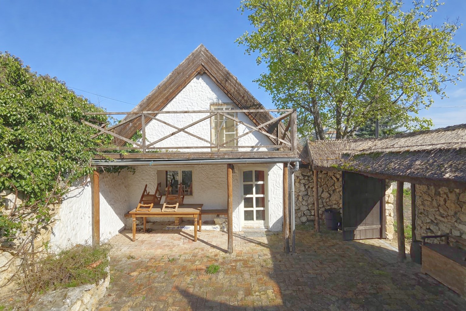 Auf dem Grundstück befinden sich zusätzlich eine Garage, ein neuer Holzschuppen sowie ein weiteres, noch unsaniertes Bauernhaus mit großem Entwicklungspotenzial. Vom uneinsehbaren Innenhof gelangt man zu einem kleinen Weinkeller sowie zu einem kleinen bewohnbaren Sommerhaus. Im Garten befindet sich außerdem ein weiterer Keller, der sich derzeit im Rohbau befindet und individuell fertiggestellt werden kann.