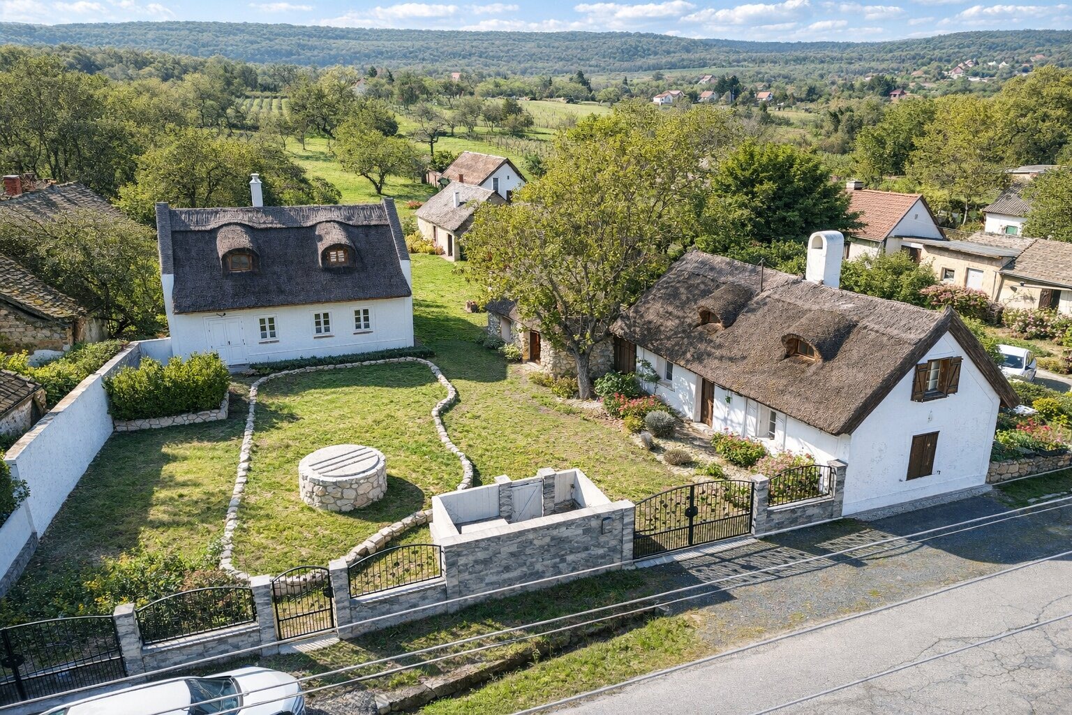Zum Verkauf steht eine besondere Liegenschaft im Zentrum von Balatonederics. Auf dem großzügigen Grundstück mit einer Fläche von ca. 2.500 m2 befinden sich zwei im klassischen ungarischen Stil generalsanierte Kleinwohnhäuser mit traditioneller Schilfdacheindeckung. Die Gebäude wurden renoviert und präsentieren sich in gepflegtem Zustand.