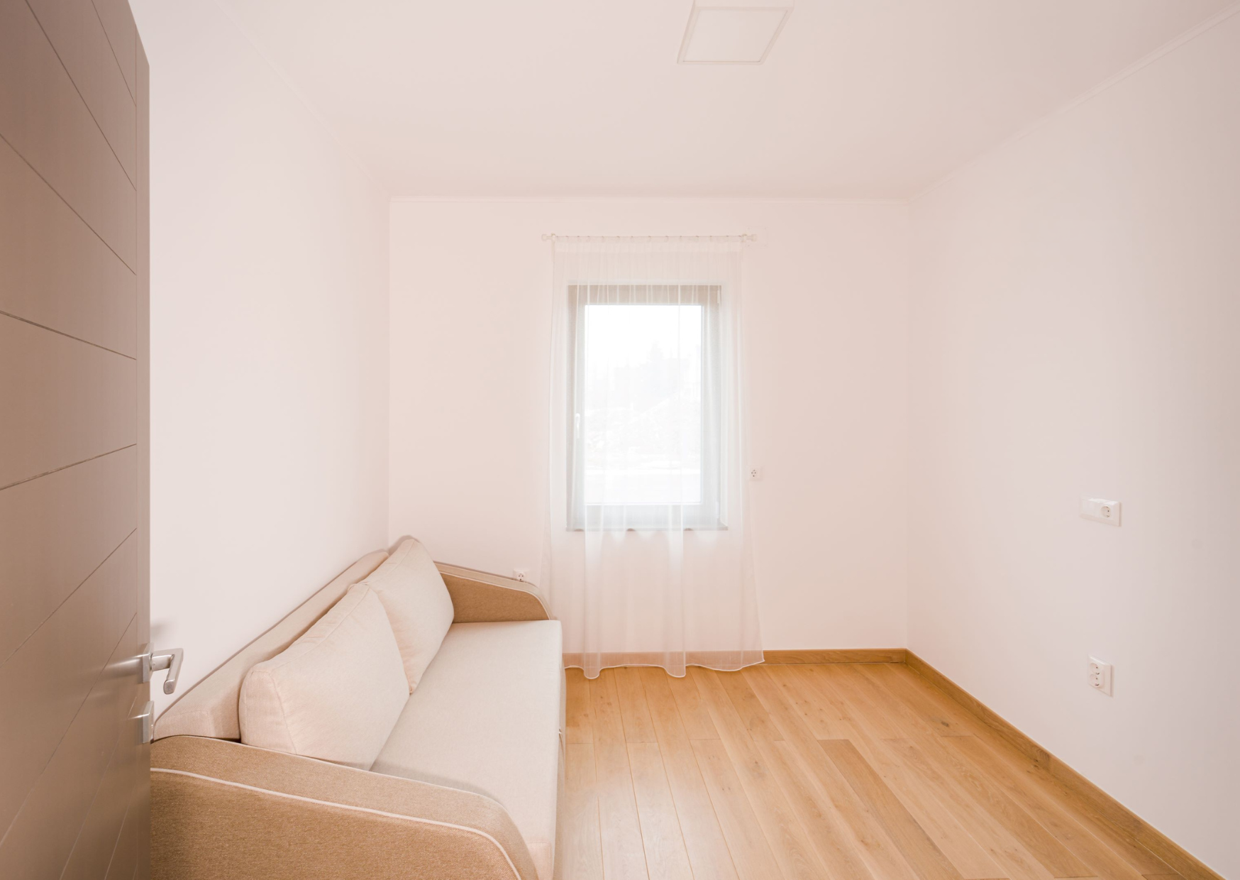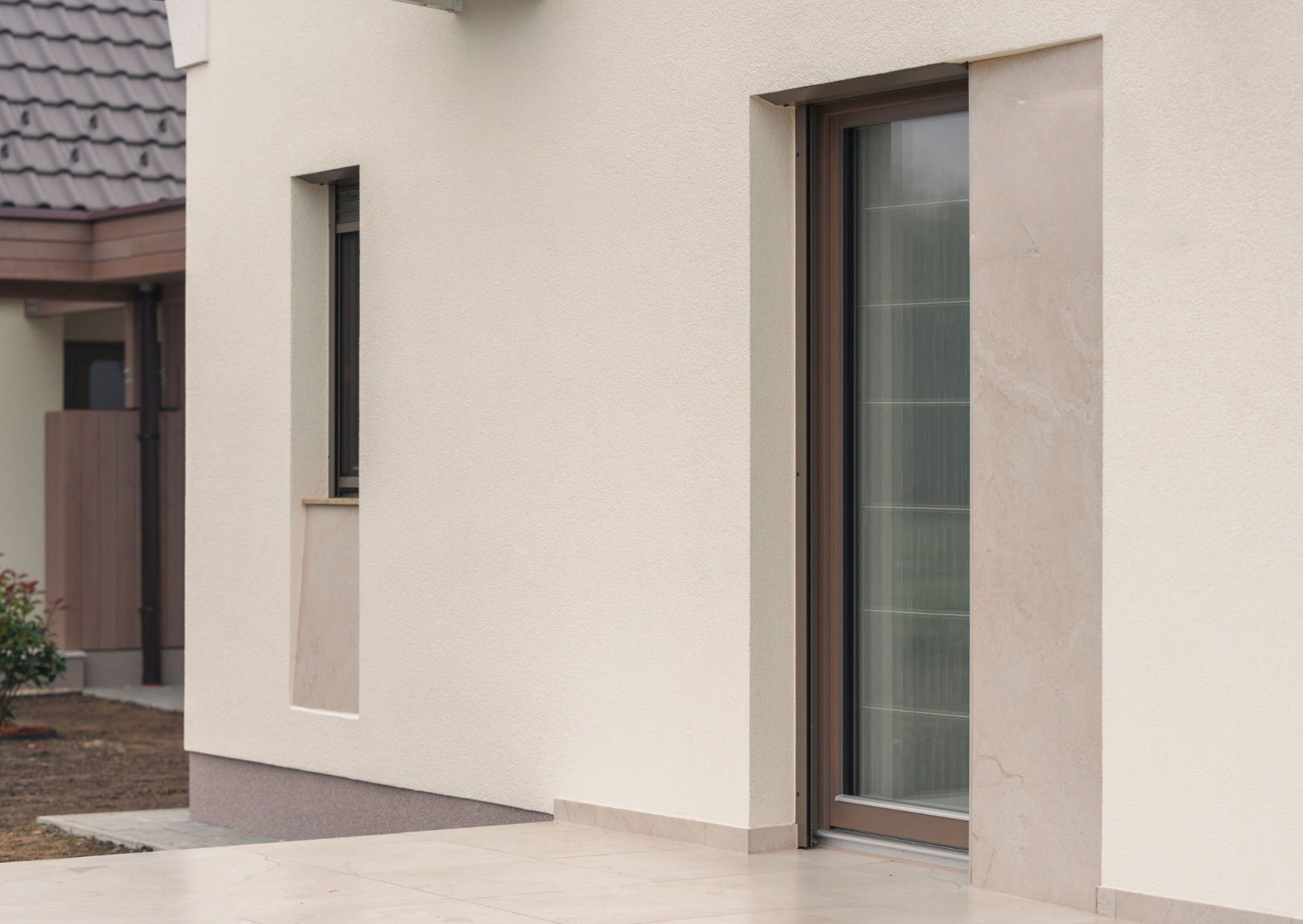 Die Fenster bestehen aus hochwertigem Holz mit 3-fach-Verglasung und motorisierten Rollläden. Im Inneren sorgen edler Dielenboden und moderne Ausstattung für ein behagliches Wohngefühl.