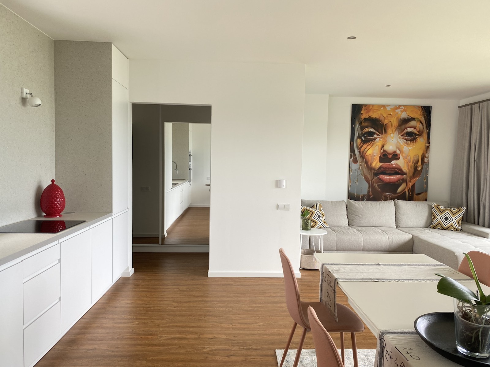 - Helles, offenes Wohnzimmer mit Essbereich und Küche mit direktem Zugang zur Terrasse mit Seeblick