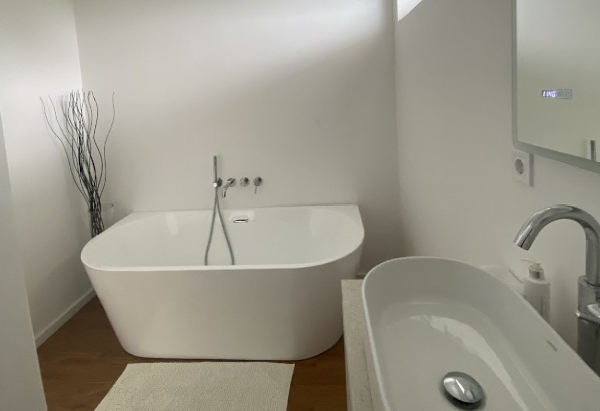 - Großes Badezimmer mit Eckbadewanne und WC