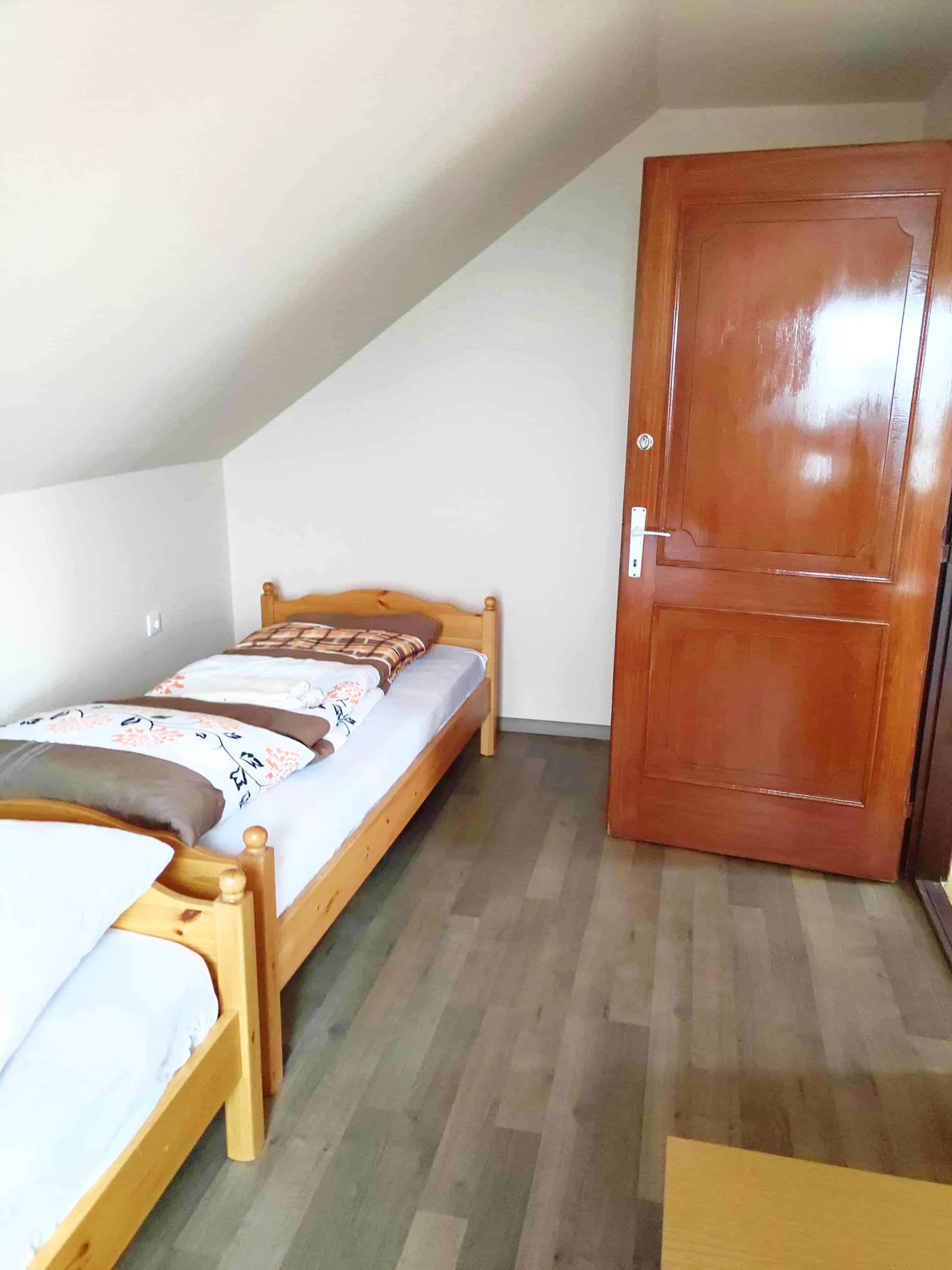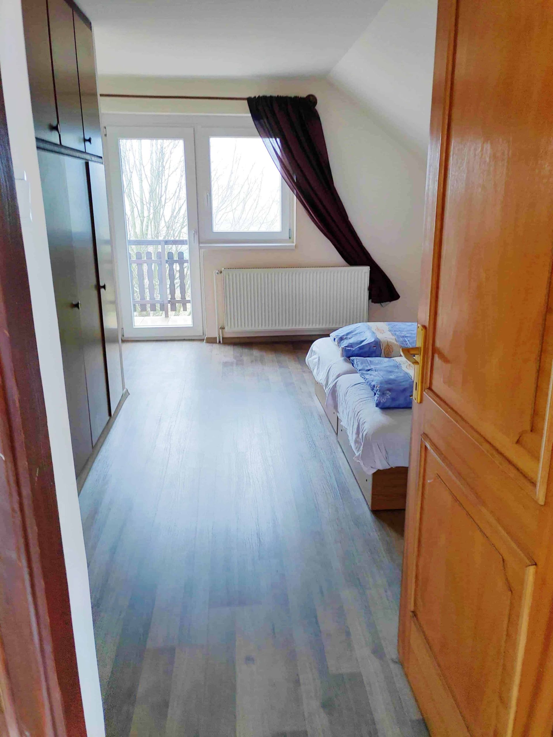 Im Erdgeschoss gibt es eine Küche, 1 Badezimmer und 2 Zimmer.