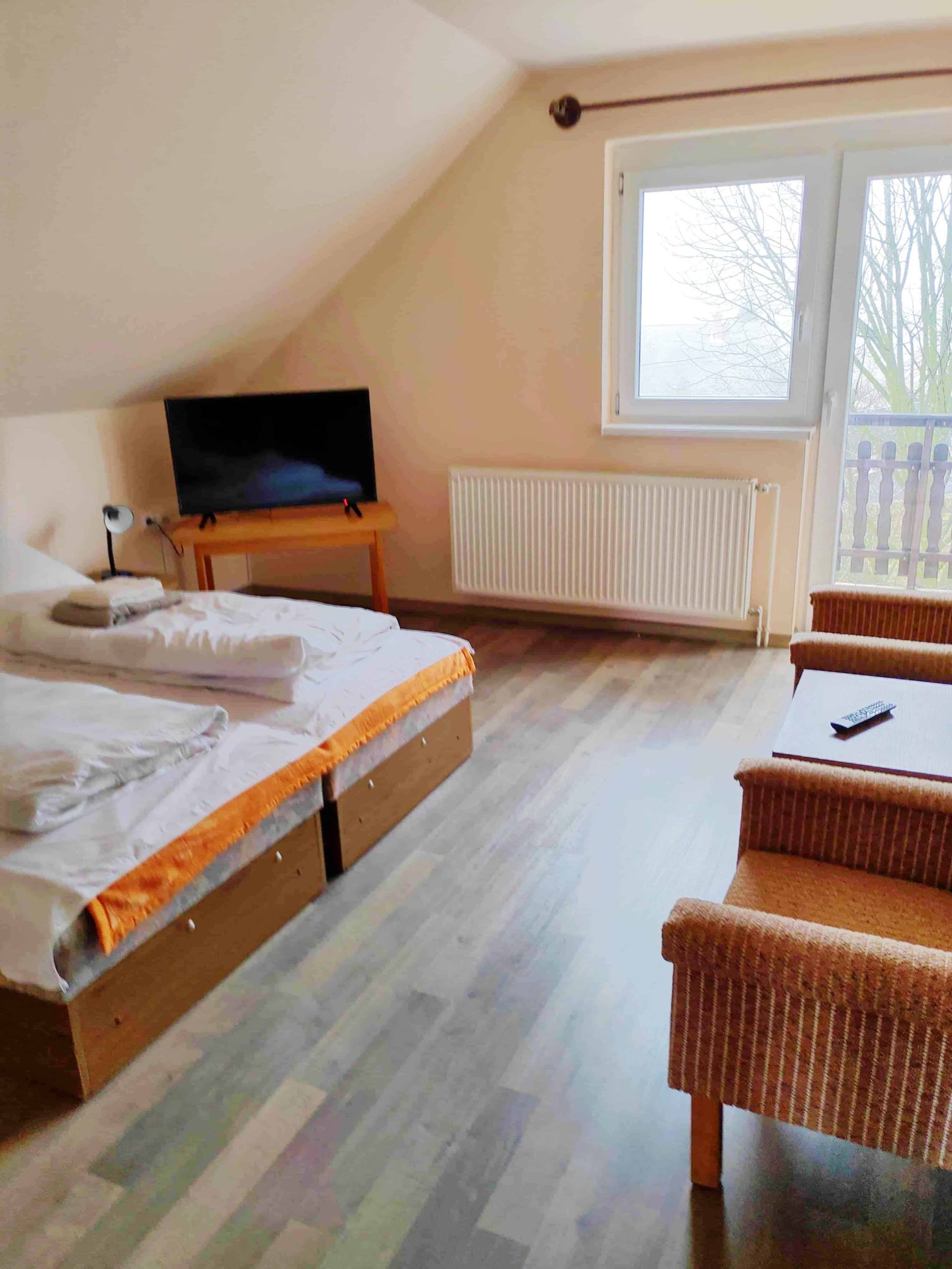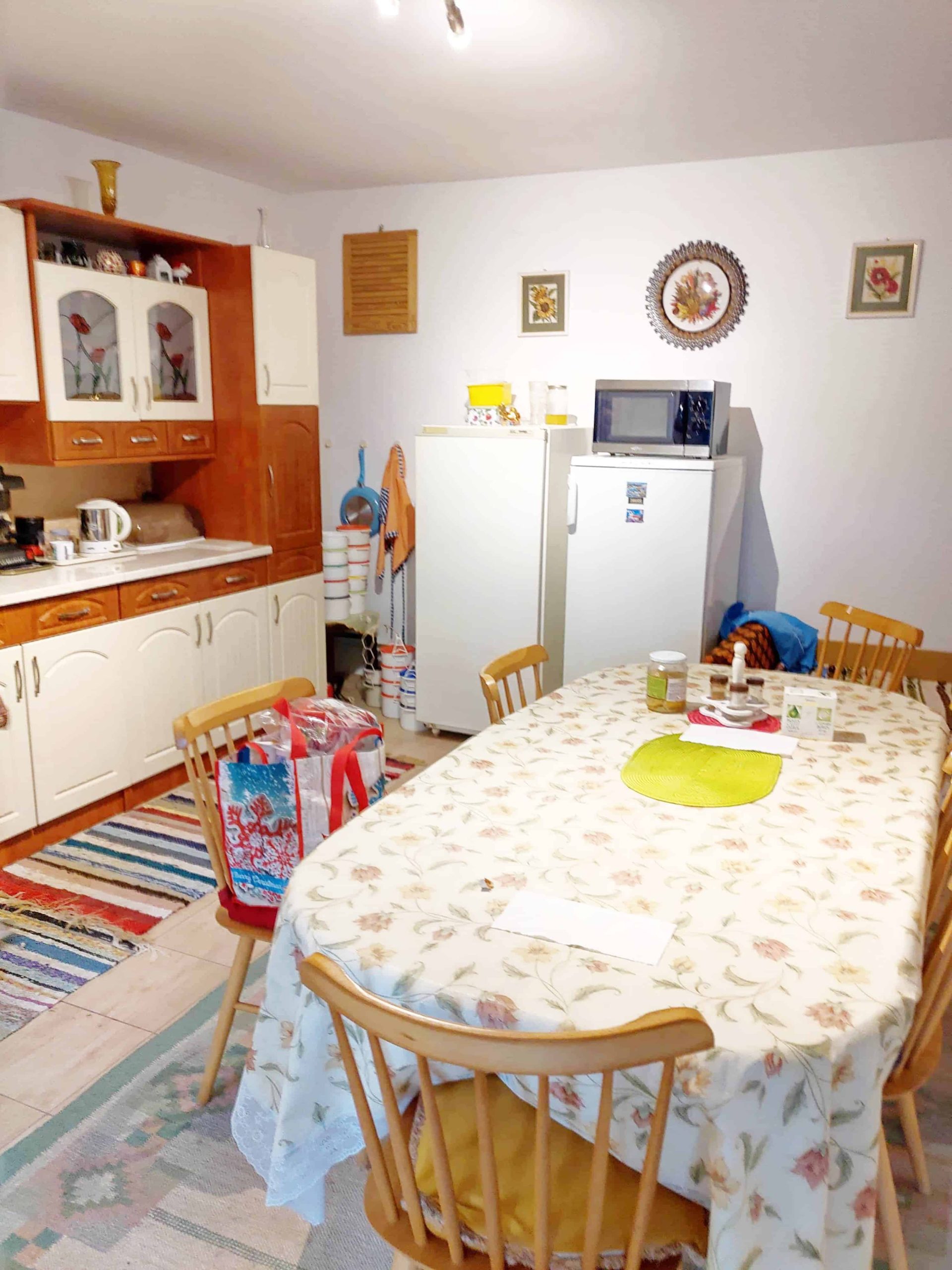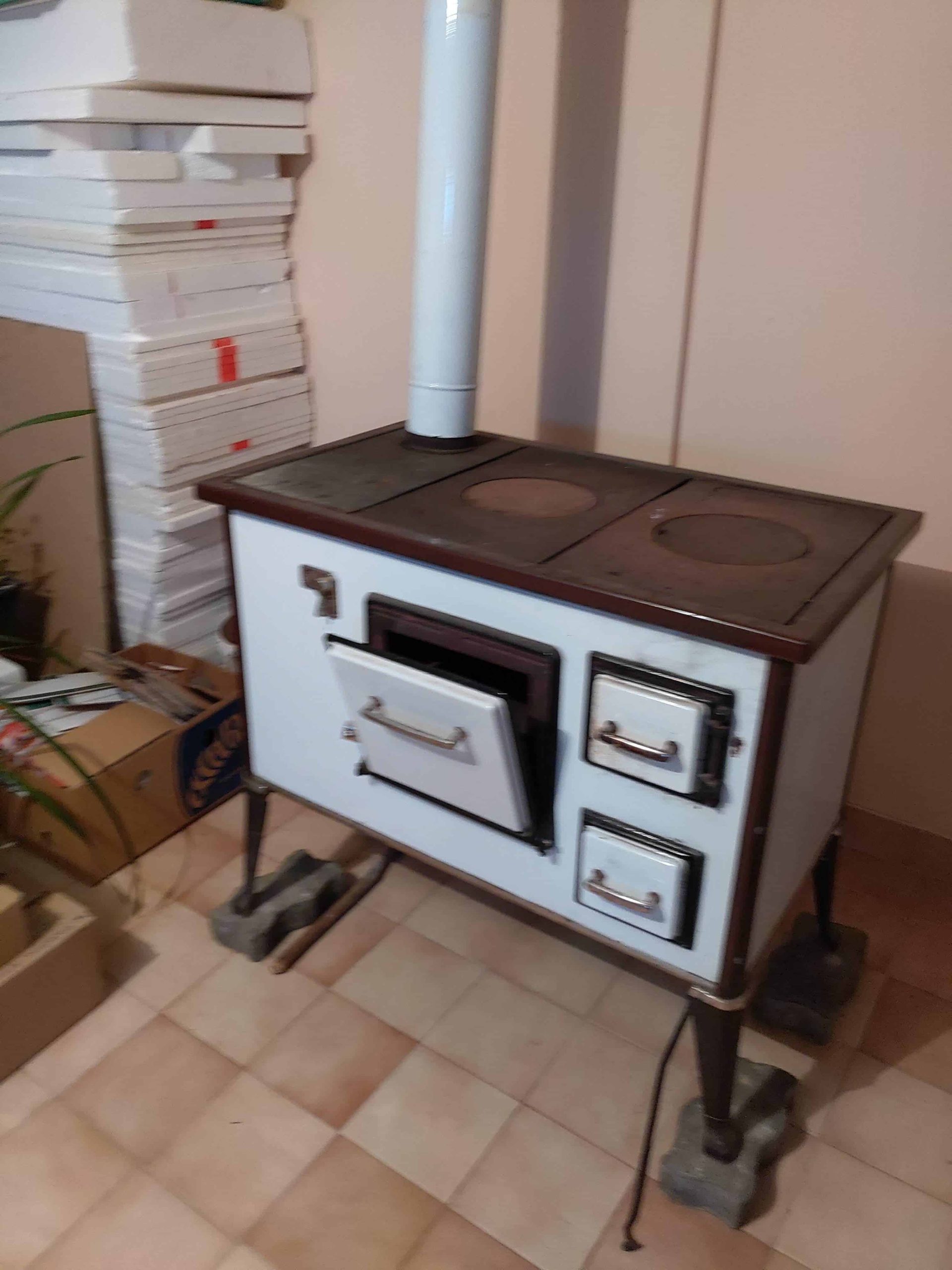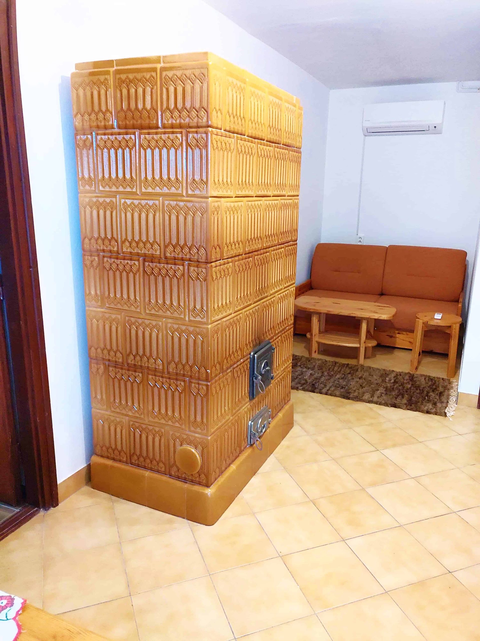 Dank des Gaskessels gibt es überall eine Zentralheizung, aber im Erdgeschoss gibt es auch einen Kachelofen.