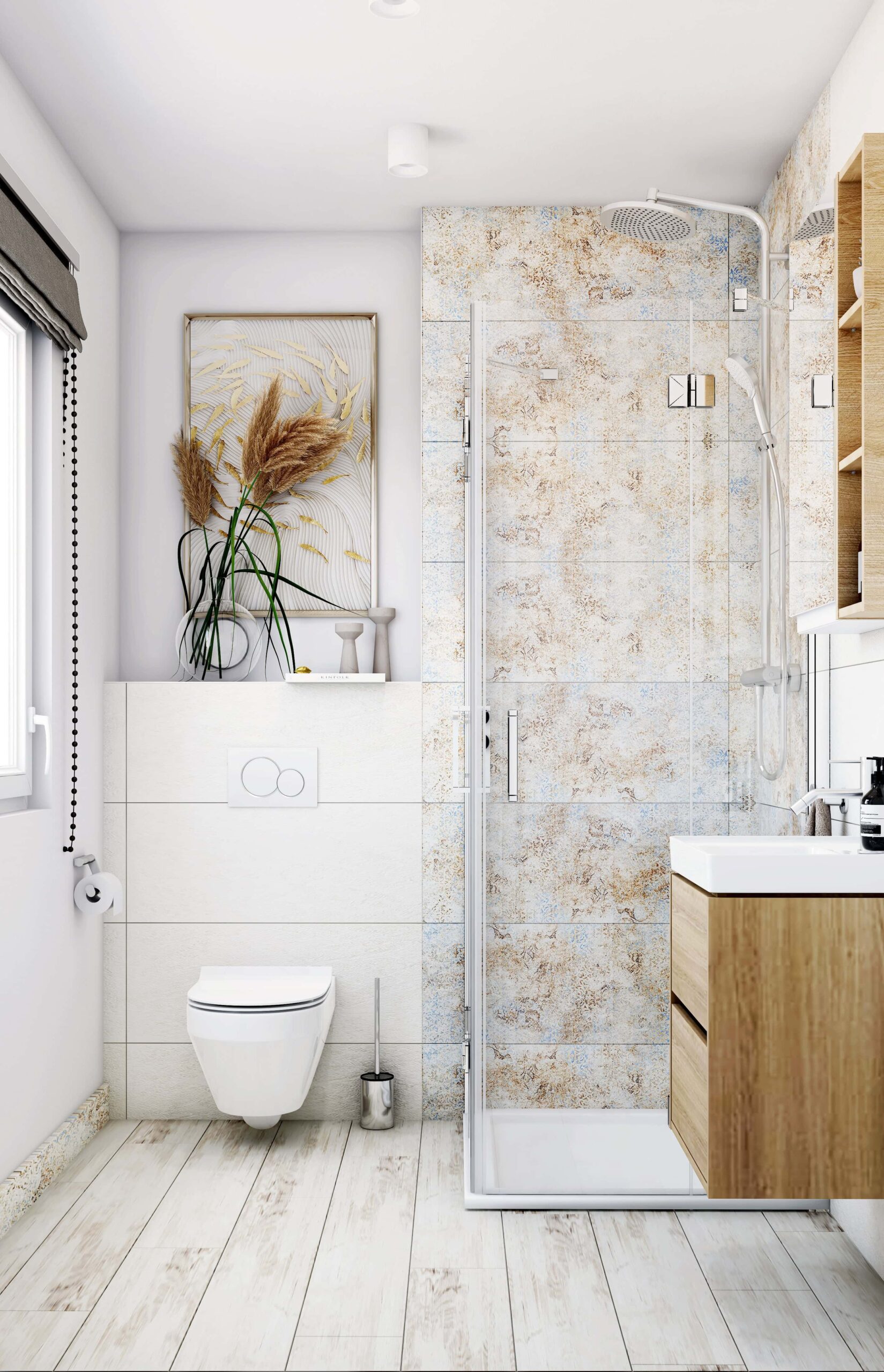 – 1 Dusche installiert, betriebsbereit