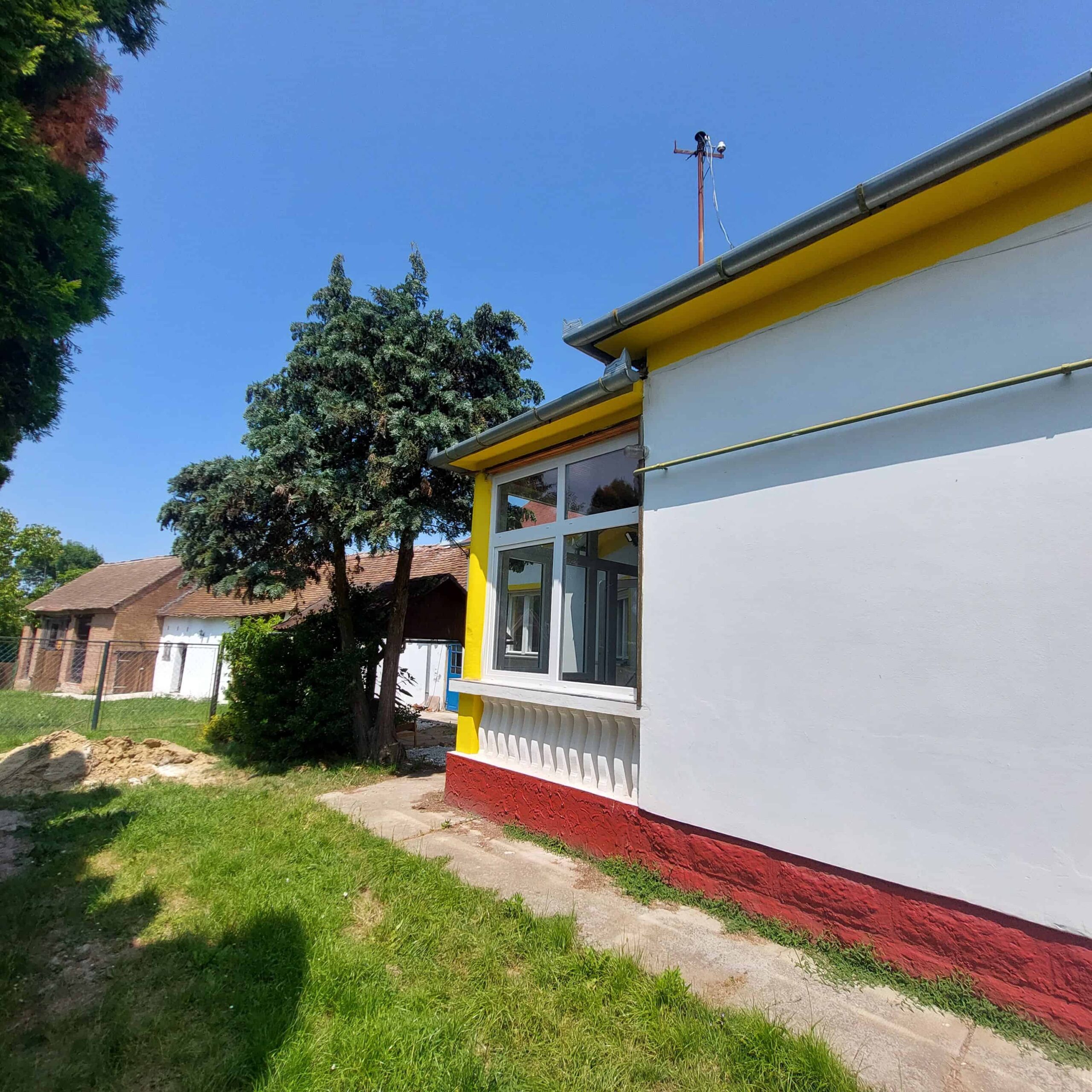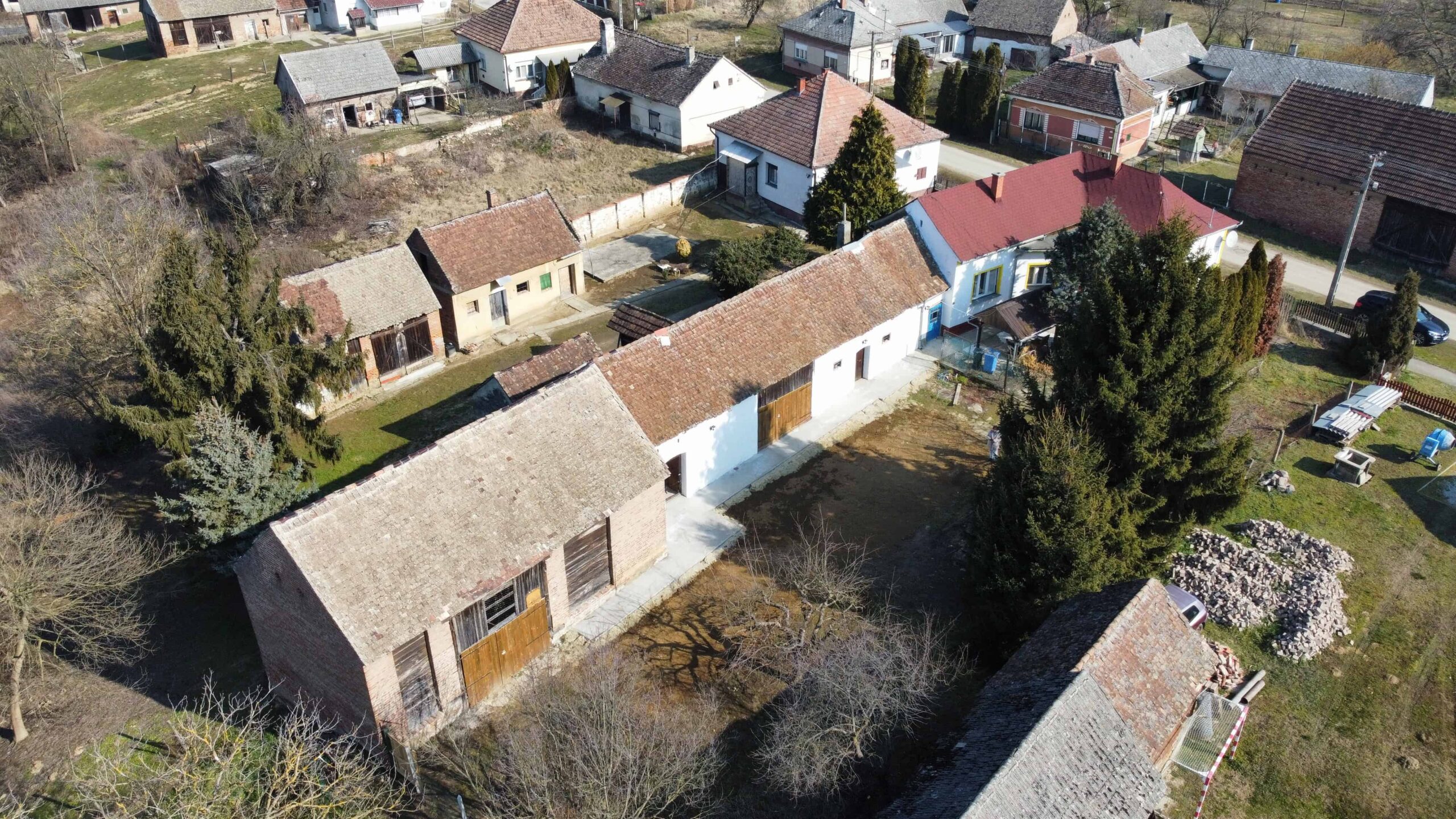Dieses Landhaus steht auf einer Grundfläche von 1 790 m2 mit einer Wohnfläche von 90 m2 im Wohngebäude und zusätzlich ein Nebengebäude mit 140 m2 Nutzfläche.