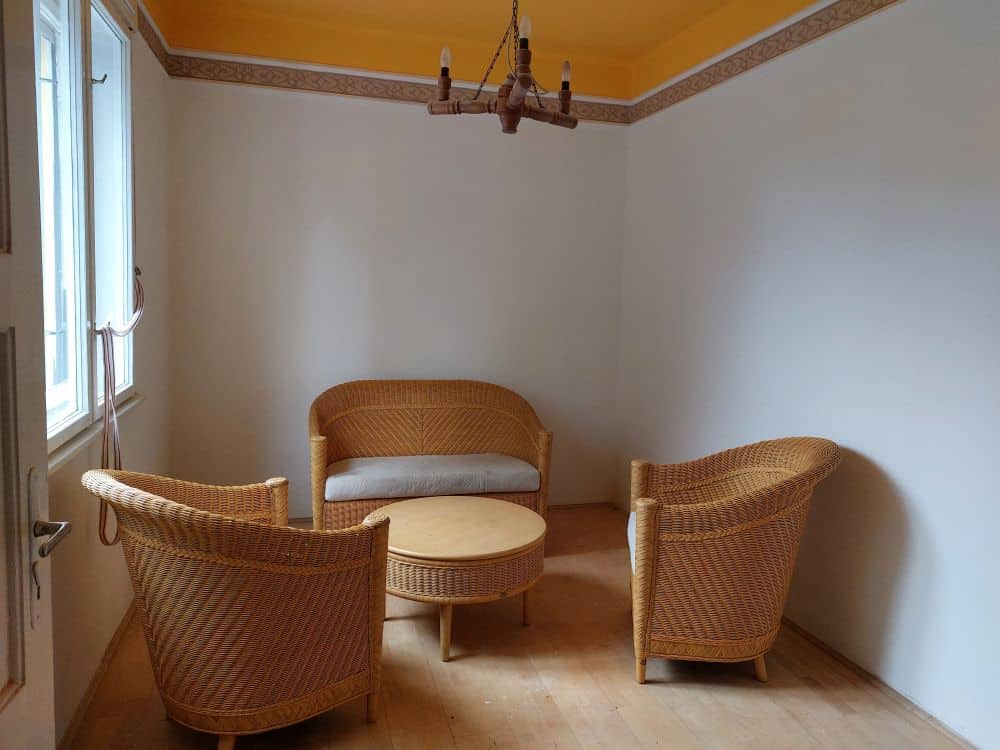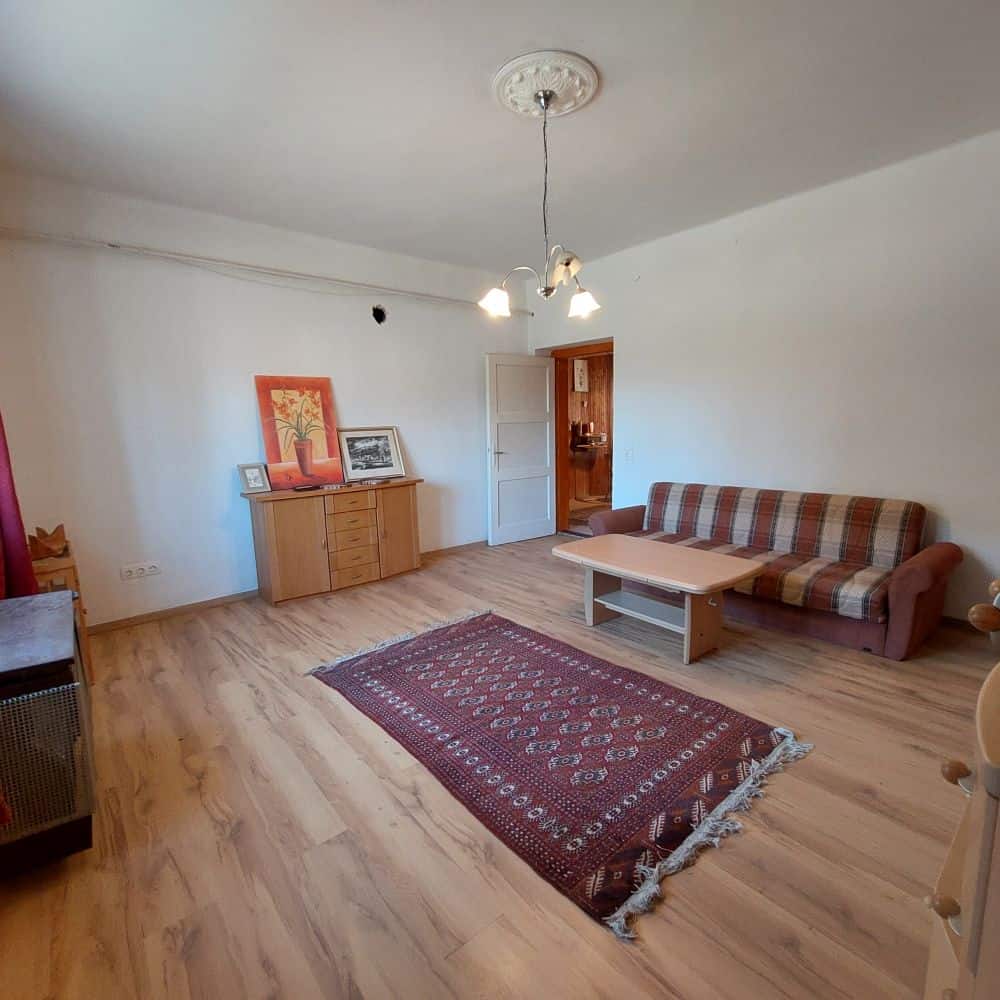 Das Haupthaus verfügt über einem Wohnzimmer mit Küche, Esszimmer, 1 Schlafzimmer, Vorraum und ein Badezimmer. Im Nebengebäude finden wir noch einen frisch renovierten Raum, ideal als Büro, Atelier oder Hobbyraum.