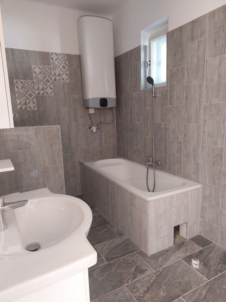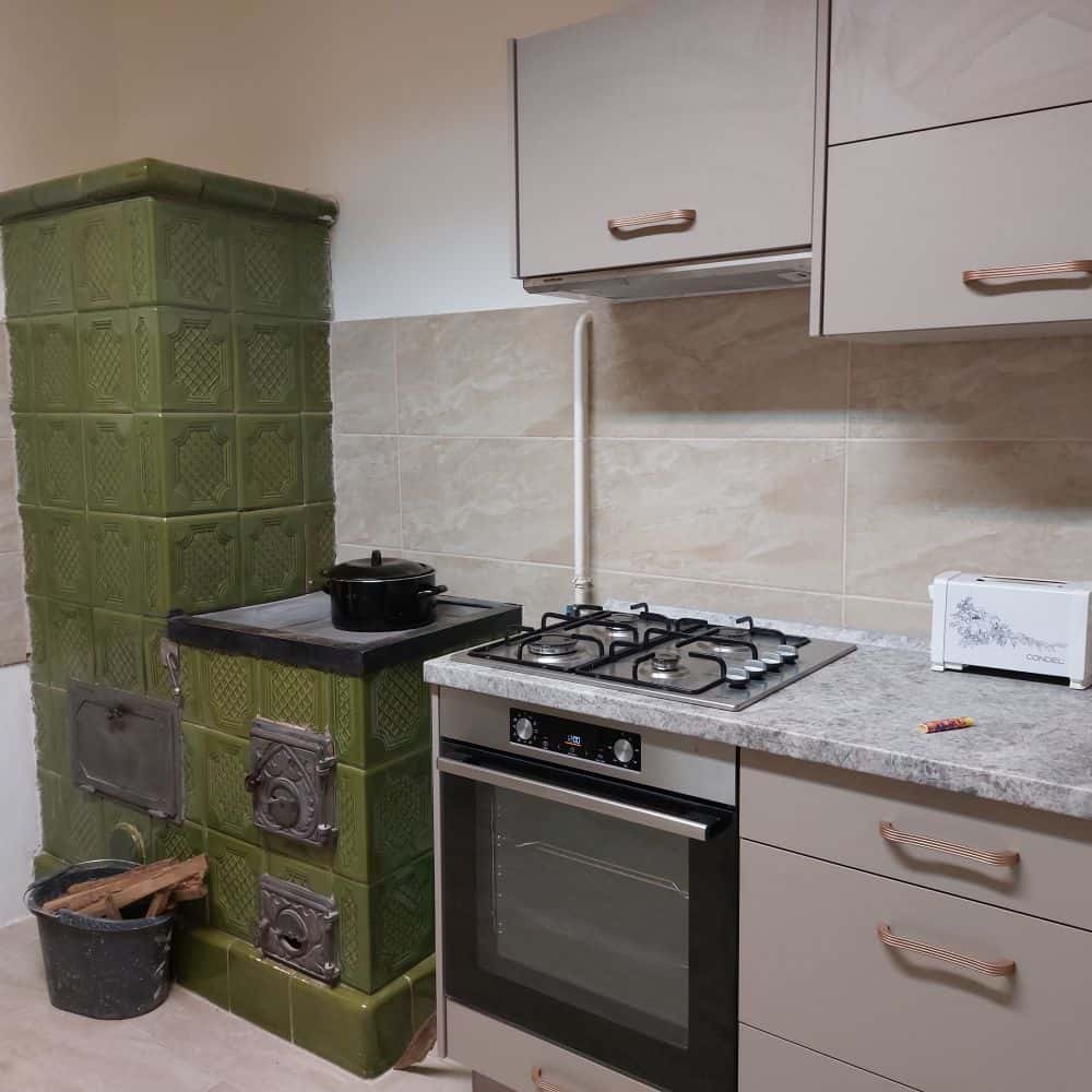 Neue Küche, neues Badezimmer mit neuen Wasserleitungen, teilweise neue Fußböden, komplett neue Elektroninstallation. Die Heizung wird durch eine Gastherme bereitgestellt, außerdem gibt es einen Kachelofen in der Küche.