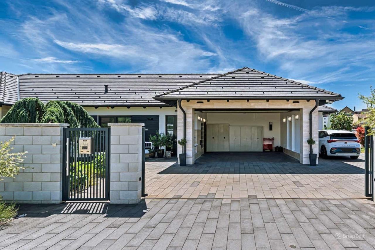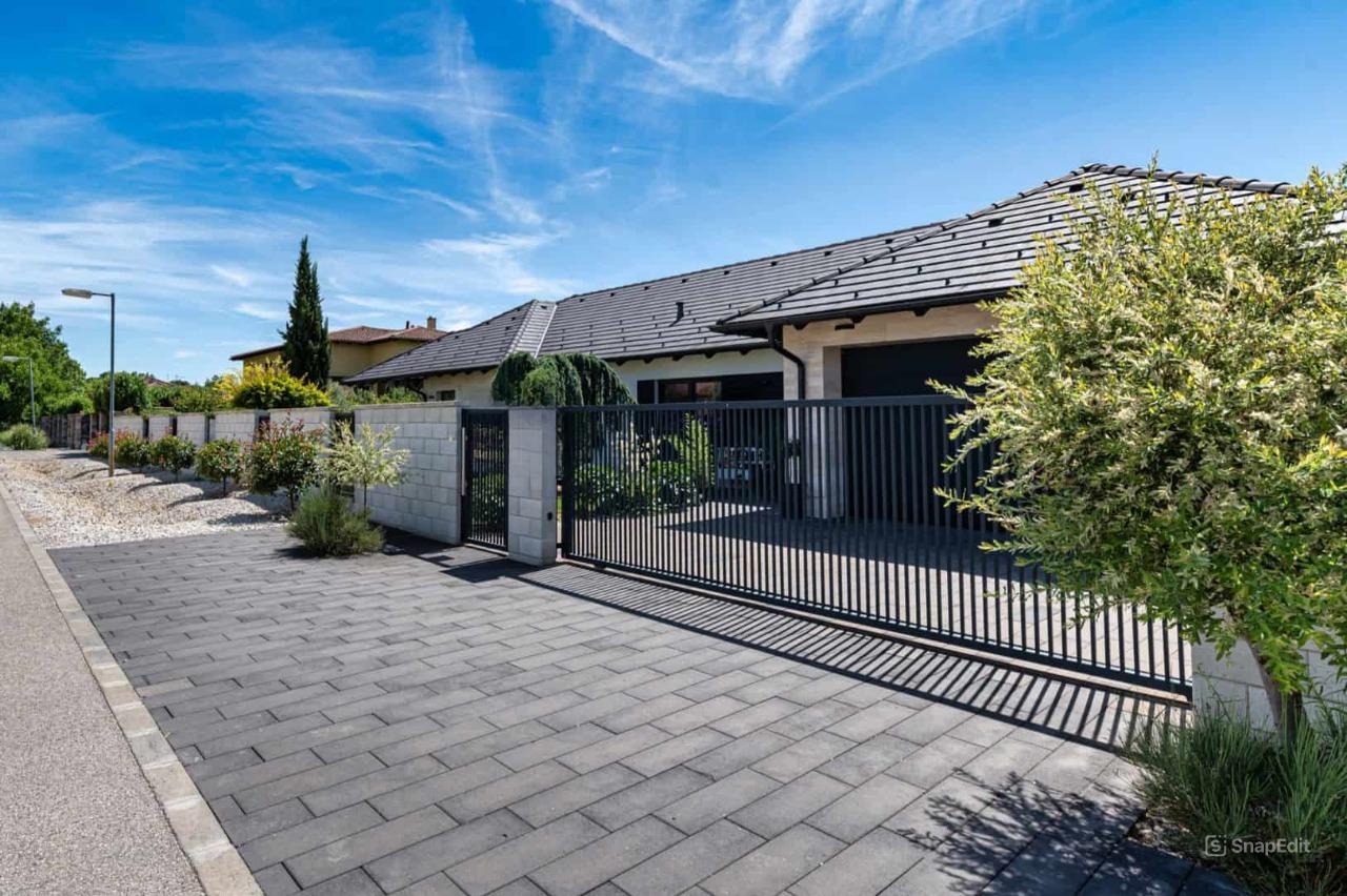 In exklusiver Lage von Mosonmagyaróvár, nur 40 Meter vom Ufer der Mosoni-Donau entfernt, steht dieses außergewöhnliche, 2016 erbaute Luxus-Einfamilienhaus zum Verkauf. Auf einer Wohnfläche von 185 m2, eingebettet in ein gepflegtes, 860 m2 großes Grundstück, bietet dieses barrierefreie, eingeschossige Haus höchsten Wohnkomfort – modern, elegant und durchdacht bis ins kleinste Detail.