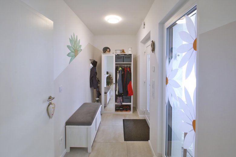 Im Massivhaus ist im Winter wie auch im Sommer eine angenehme Temperatur. Das Wärmerückhaltevermögen der 34 cm dicken Außenwand beträgt U=0,13 W/m2K, was eine hervorragende Isolierung bietet und als einer der besten auf dem heutigen Baumarkt gilt.